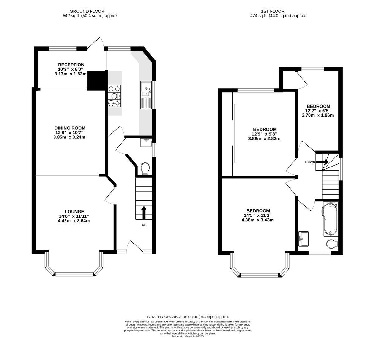 Bedroom 1: w: 3.43m x l: 4.38m (w: 11' 3" x l: 14' 4")