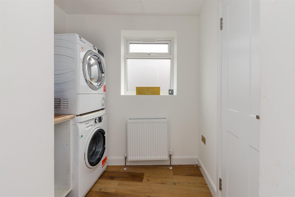 laundry room with frosted glass window to side and door to downstairs shower room